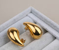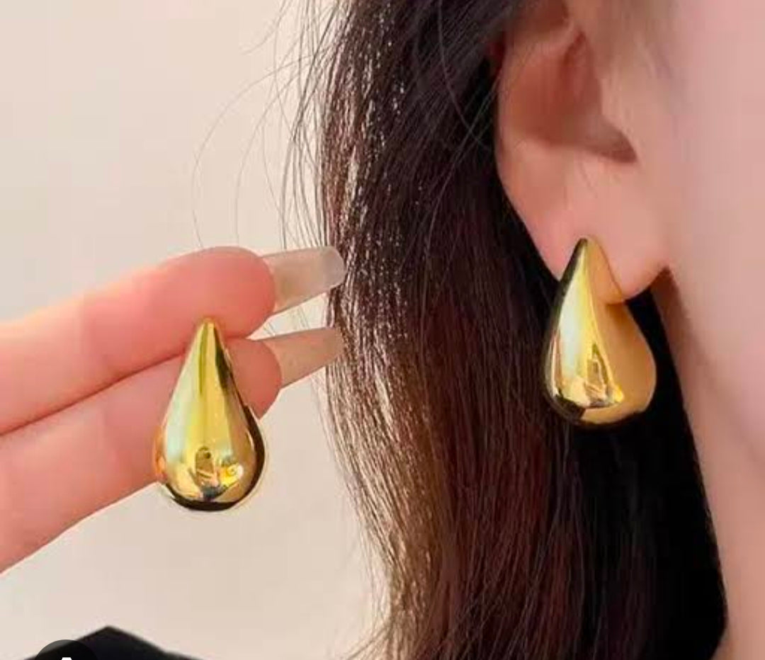 Design: The earrings feature a smooth, glossy finish and a distinctive teardrop or water-drop shape with a chunky, dome-like appearance. They are designed with graceful lines and a chic, simple aesthetic.
