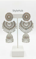 Oxidized Silver Jhumka Earrings or Oxidised Silver Chandbali Jhumka Earrings.