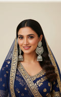 Design: The earrings feature a stunning, intricate design with a round stud at the top connected to a larger, heart-shaped or crescent-shaped filigree section, which then leads to a dome-shaped jhumka base. The overall look is traditional and bohemian (Boho).